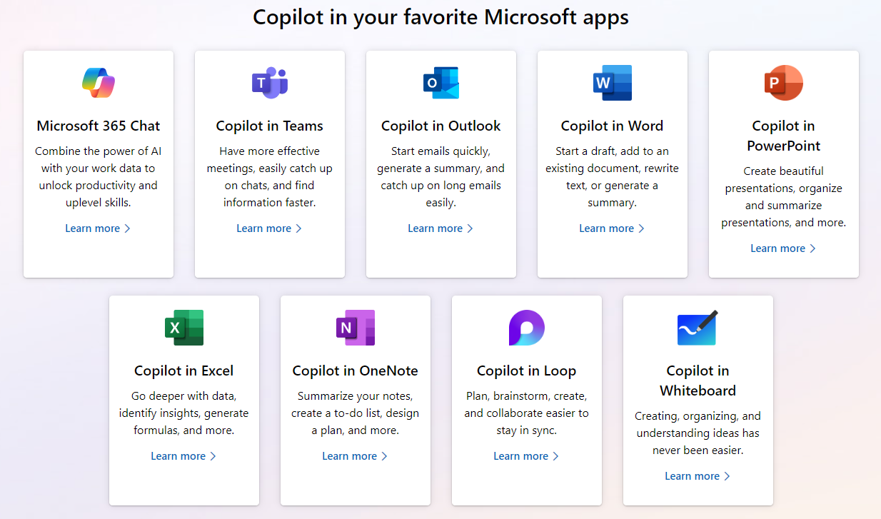 Copilot for Microsoft 365 refererer til integrasjonen av Copilot AI-assistenten inn i Microsofts 365-applikasjoner som Teams, Word, Outlook, Excel og PowerPoint. Copilot kan da hjelpe med å optimalisere arbeidsflyten din, for eksempel ved å generere tekst og tabeller i Word, oppsummere og utforme e-poster i Outlook, og lage presentasjoner i PowerPoint.